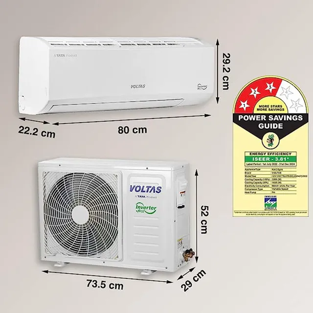 VOLTAS SPLIT AC 1 TR 3 STAR MODEL NO - 123V VECTRA PRIDE